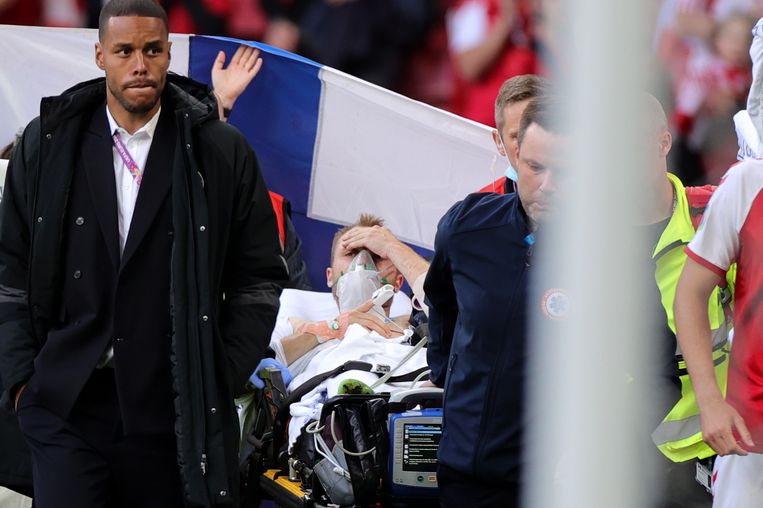 Eriksen bleef minutenlang roerloos liggen op het veld.