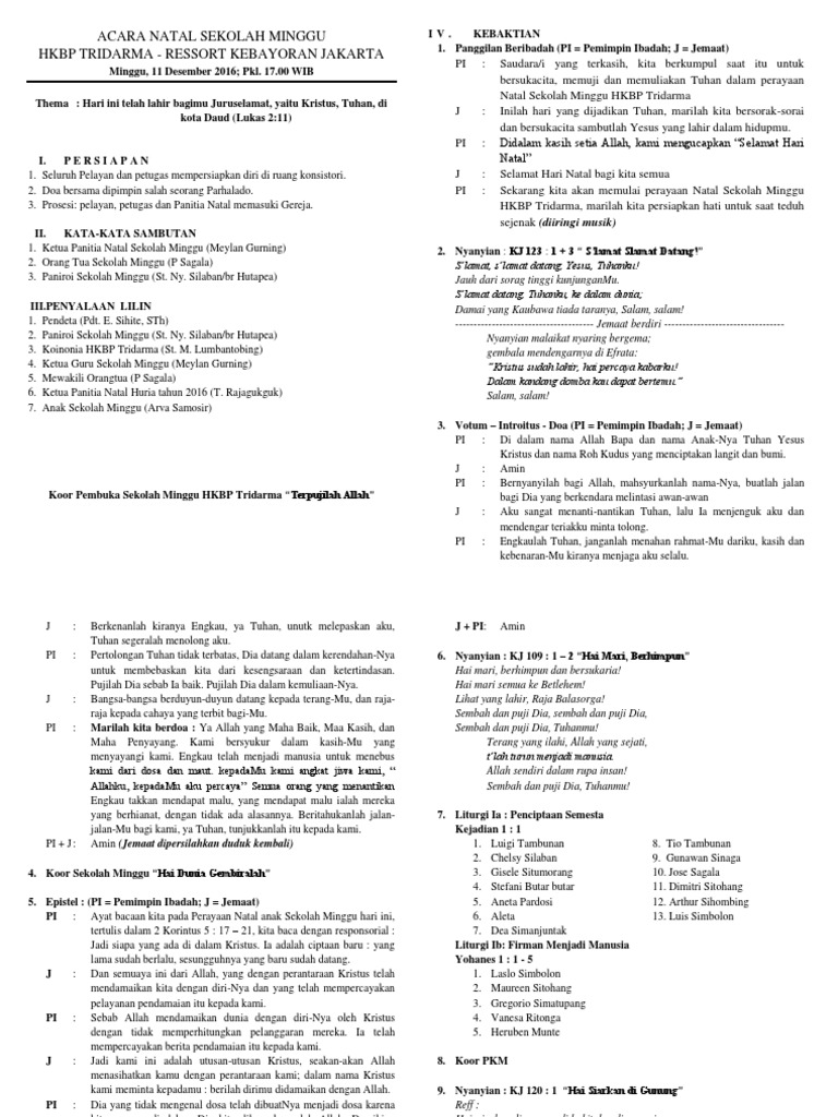 Dalam kata sambutan yang baik biasanya berisi penjelasan singkat mengenai latar belakang, tujuan, dan harapan acara tersebut terlaksana. Di hari natal, kami mau mempersembahkan sebuah tarian untuk tuhan yesus. Natal sekolah minggu kabar baik untuk semua. Dan bahwa kita diangkat menjadi anak raja dan ahli waris kerajaan tata tertib acara natal pemuda gkps gunung muliaaaa.doc. Rasiyambumen.com kajian khazanah islam (kategori posting mu'amalah).